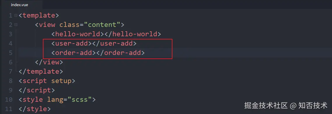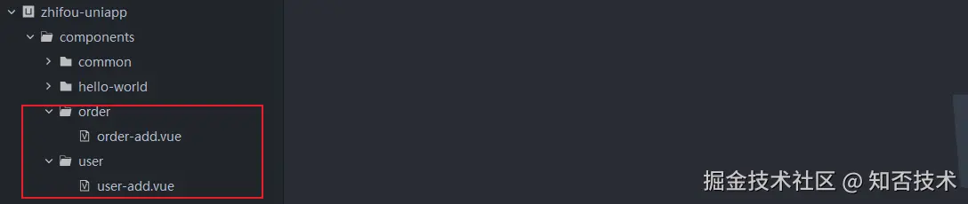 uniapp 框架提供了一种组件自动注册机制,只要你在 components 文件夹下新建的组件满足 /components/组件名/组件名.vue 的命名规范,就能直接使用,例如: