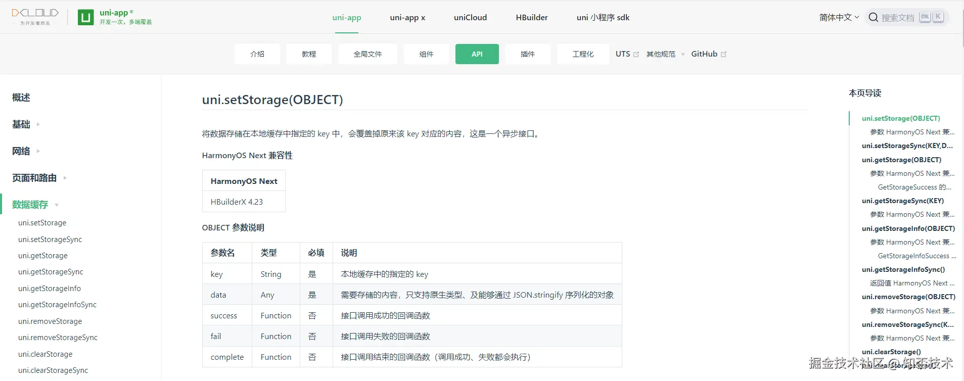 uniapp 数据缓存 API 文档地址: