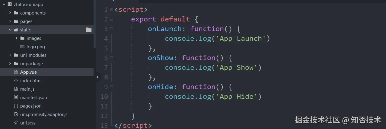 - onHide:应用从前台进入后台时触发。