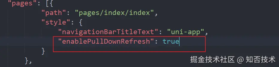 1.pages.json 的 enablePullDownRefresh 配置为 true 时才生效
