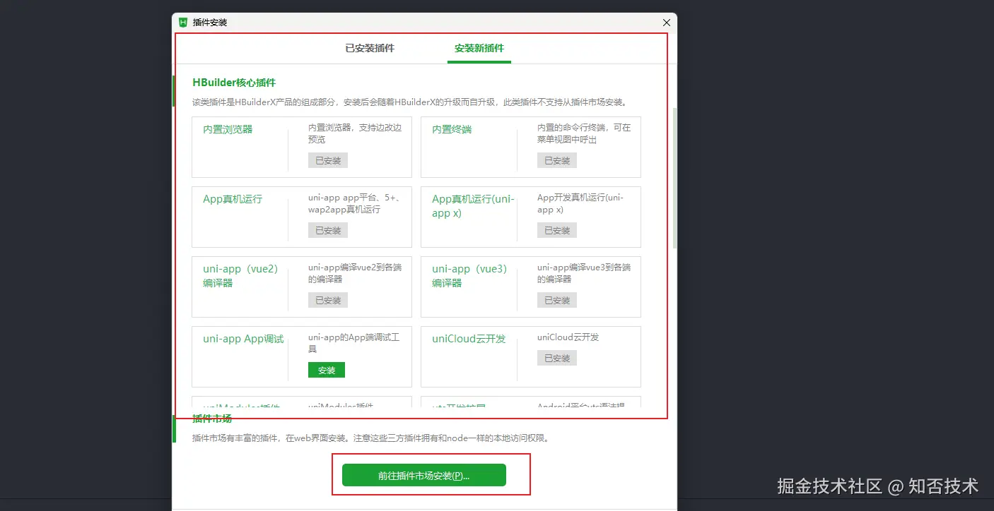 HbuilderX 内置了很多常用的插件,我们也可以去插件市场单独下载安装其他插件