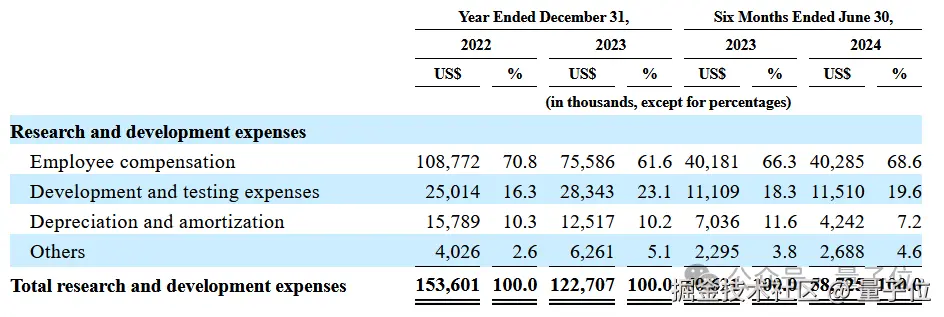 招股书中详细列出了研发费用的明细,主要包含员工薪酬福利、开发和测试费用,与研发相关的折旧和摊销等等。