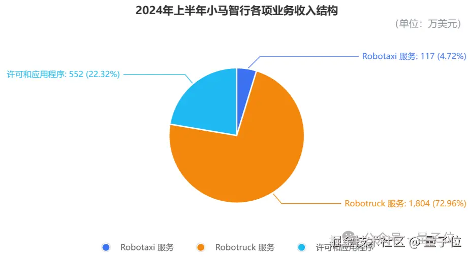 其中,Robotruck 服务是收入来源大头,在 2024 年上半年为小马带来 1803.5 万美元(约 1.28 亿元)的收入,同比增长 62.4%。
