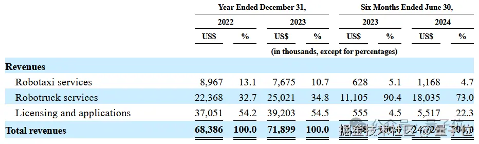 今年上半年,自动驾驶出行和货运服务共计营收 1920.3 万美元(约 1.37 亿元),占据总收入的 77.7%。