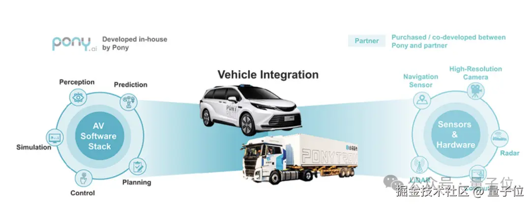 而这个大脑或者说 AI 司机,本身不受车辆平台种类限制,集成各种传感器类型和算法模块,包括 Robotaxi、Robotruck、以及量产乘用车在内的各个技术方案,底层核心技术复用率超过 80%——包括车端的感知识别、预测博弈模块,以及后端的数据处理、训练部署能力等等都是通用。