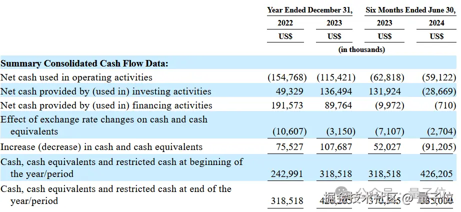 24H1 经营活动、投资活动以及融资活动所消耗的现金流分别达到 5912 万美元(约 4.2 亿元)、2867 万美元(约 2 亿元)、71 万美元(约 506 万元);上半年现金流净额减少 9121 万美元(约 6.5 亿元)。