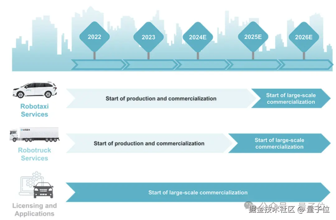 细分收入结构,可以归为三类,分别是 Robotaxi 服务、Robotruck 服务以及许可和应用程序。