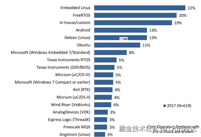 使用实时操作系统还需要额外的ROM(作用:固化的存储代码)/RAM(作用:代码运行的内存)开销,2~5%的CPU额外负荷,以及内核的费用。