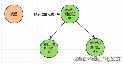 如图所示,可以将需要调度的任务,存储到一个链表里面,然后开启一个线程,轮询该链表,如果如果某个任务的执行时间已到,便执行该任务。