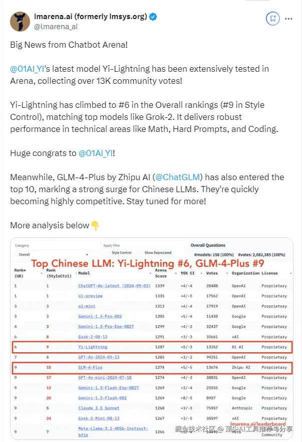 此次排行榜的评选规则进行了重大调整,更加注重AI模型解决实际问题的能力,而非仅仅关注回答的长度和风格。在新的规则下,“Yi-Lightning”仍然能够与GPT-4和Grok-2处于同一梯队,展现了其强大的实力。