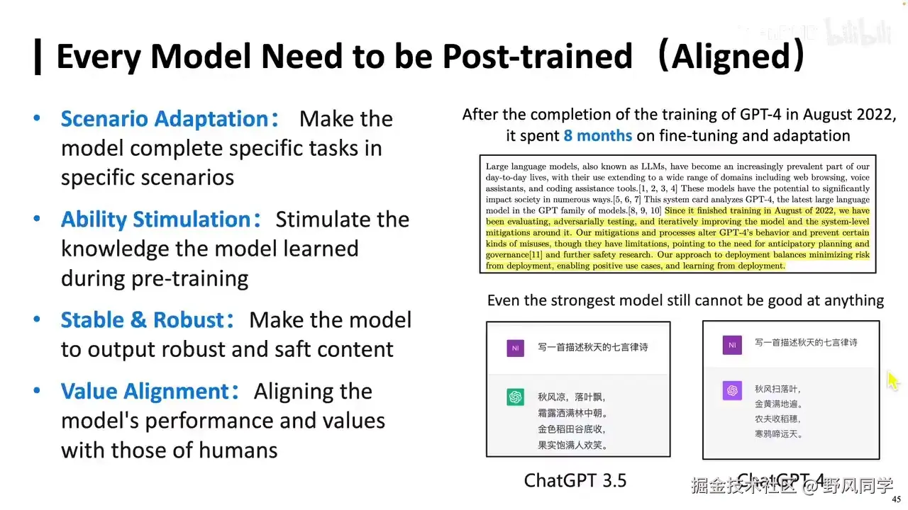 - 对齐和后训练是确保模型输出符合人类期望的关键步骤。