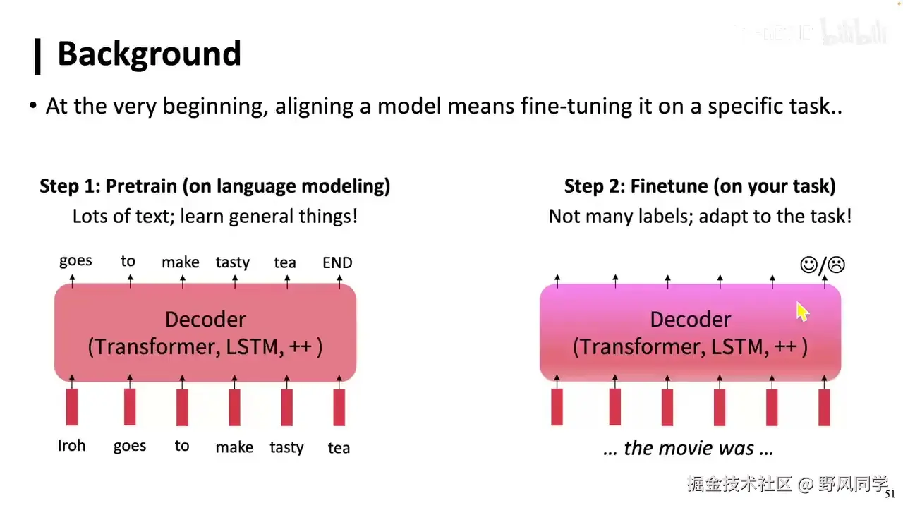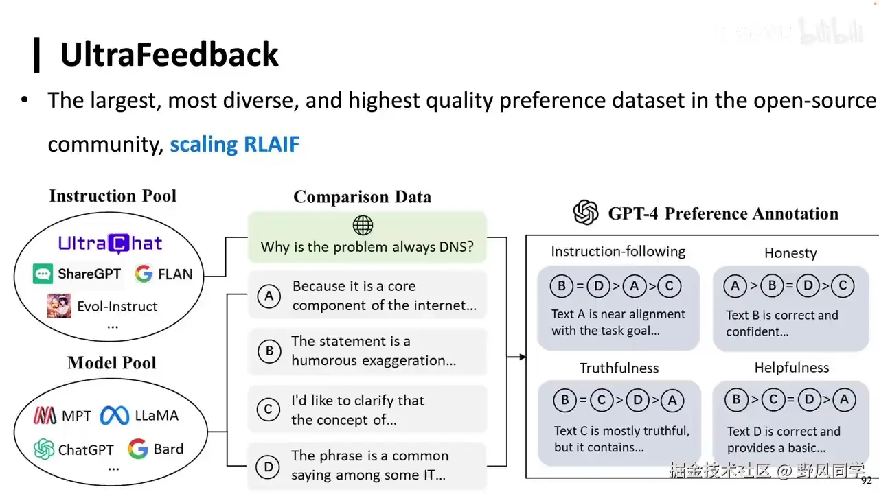 - 偏好学习(RLHF) :为大模型提供微妙的监督信号,指示A优于B。
