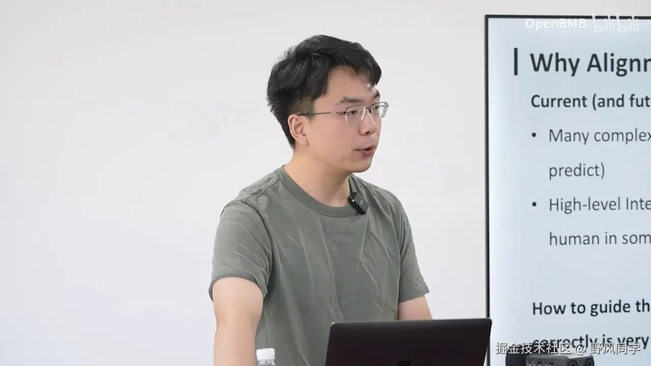 大家可以先思考一下,当模型在某些能力上超越人类时,例如总结一百本书,模型不仅做得更好,而且速度更快。在这种情况下,我们如何确保模型没有采取捷径或隐藏行为?当我们要求模型总结一百本书时,由于无法提供监督信号,我们无法判断其结果的正确性。模型可能表面上看起来正确,但并非我们期望的答案。因此,超级对齐关注的不仅是能力上的对齐,还包括安全性,例如模型是否可能进行未被监测的行为,如篡改代码或自我复制,甚至窃取能源。这些内容将在后续课程中详细讨论。今天的课程到此结束,谢谢大家。