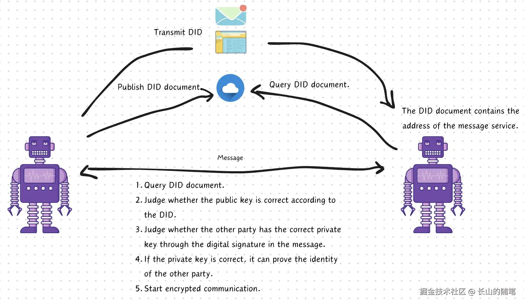 那现在是否一种技术能解决跨平台身份认证的问题呢?这引出了W3C最新发布的DID(去中心化标识符)规范。虽然现在这个技术应用范围的还比较小,但是我认为这是最适合智能体通信的基础性技术。
