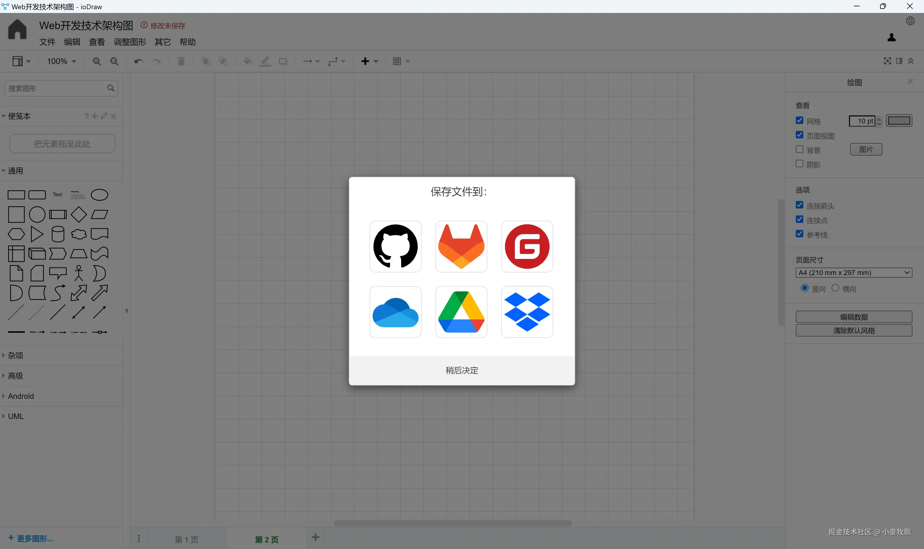 - 云端存储: 告别本地存储烦恼,现在您可以将文件轻松保存到 GitHub、GitLab、Gitee、OneDrive、GoogleDrive 和 Dropbox 等平台,随时随地访问您的作品。