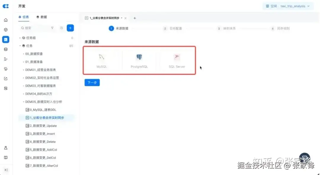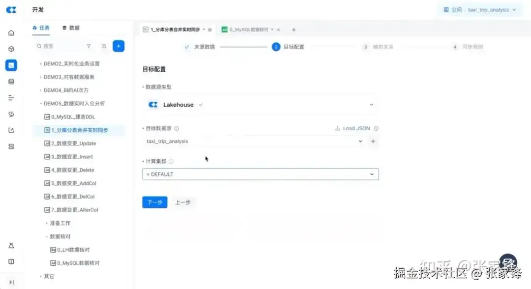 下一步在目标配置里选择数据源、目标数据源及计算集群。