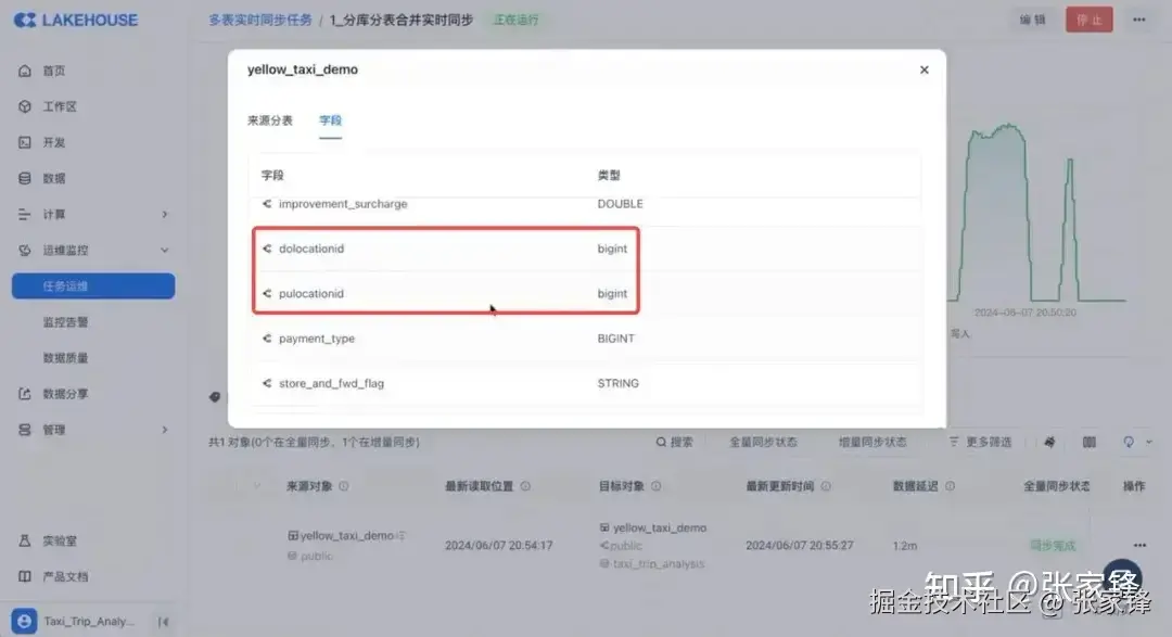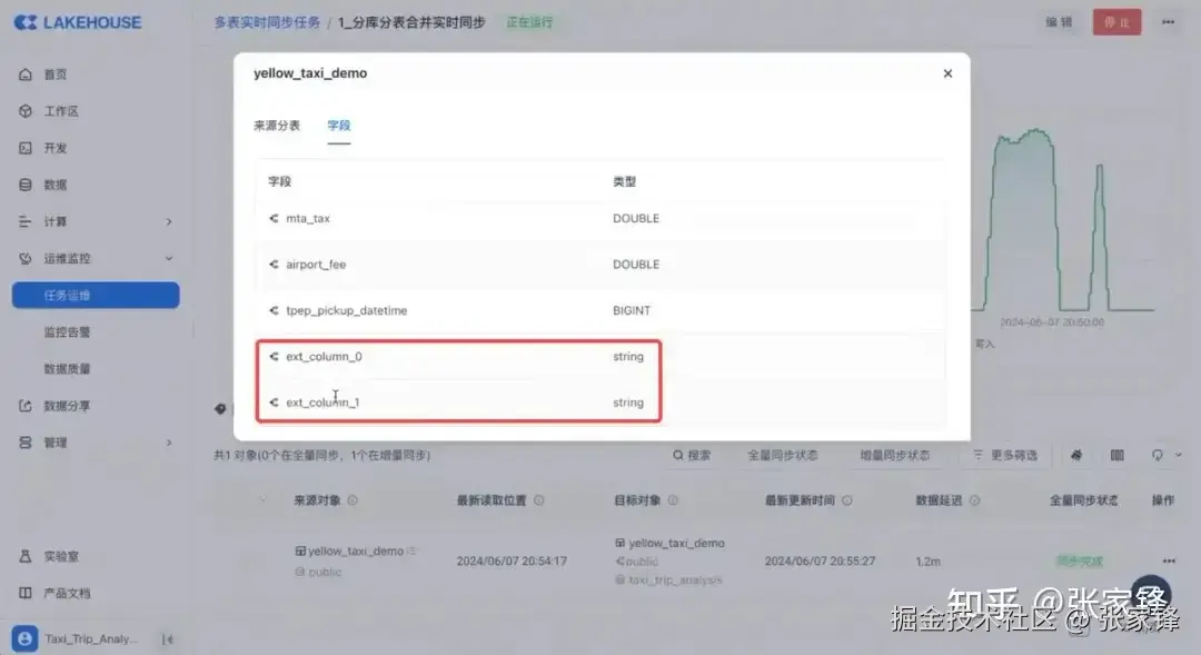 同步完成后,也可以在任务运维界面中检查源端的变更是否被成功同步到目标端,可以看到,新增的字段 ext_column_0 & ext_column_1已经被扩展进目标端,更改的 bigint 字段也完成变更。