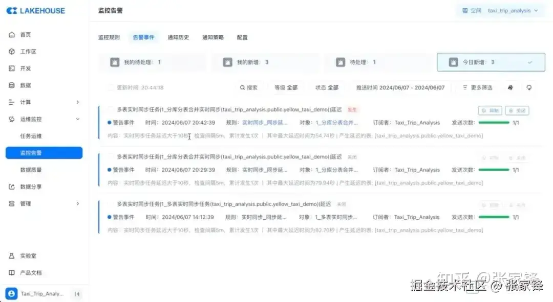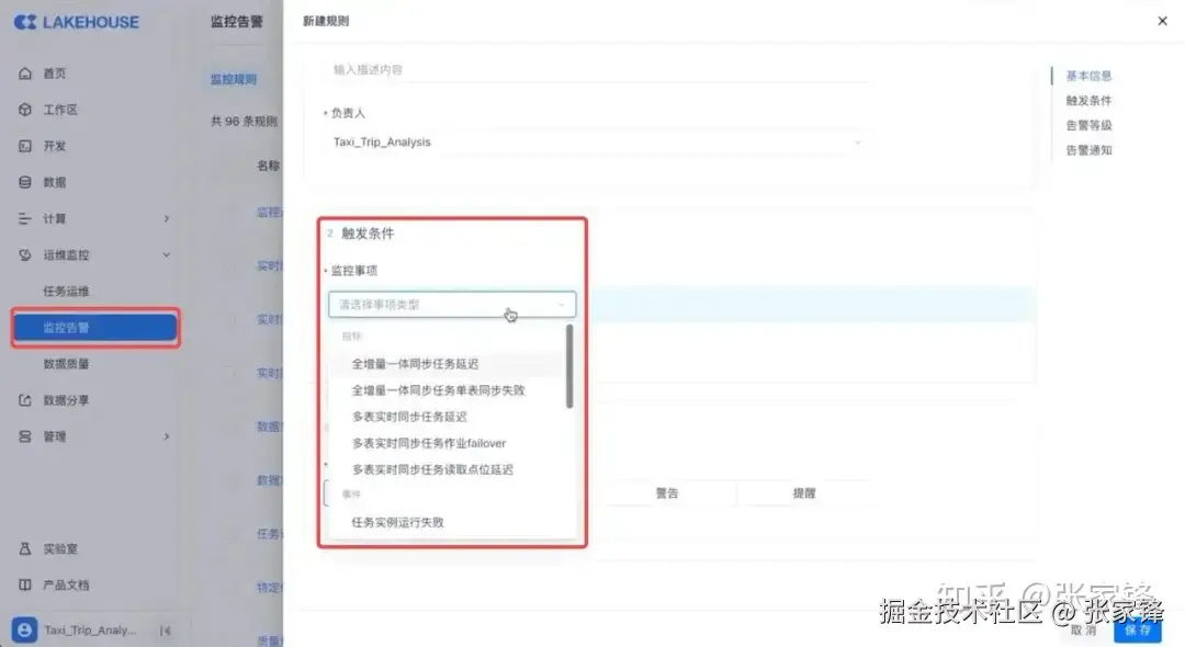 云器Lakehouse内置监控告警模块,内置了丰富的状态和指标监控能力,支持自定义配置监控规则,来全面监控整个任务运行的状态,包括任务实例运行失败、单表存量数据同步异常、实时同步任务端到端延迟、作业 failover 、源端数据读取的点位延迟等等,一系列的监控事项,都可以通过规则监控起来。