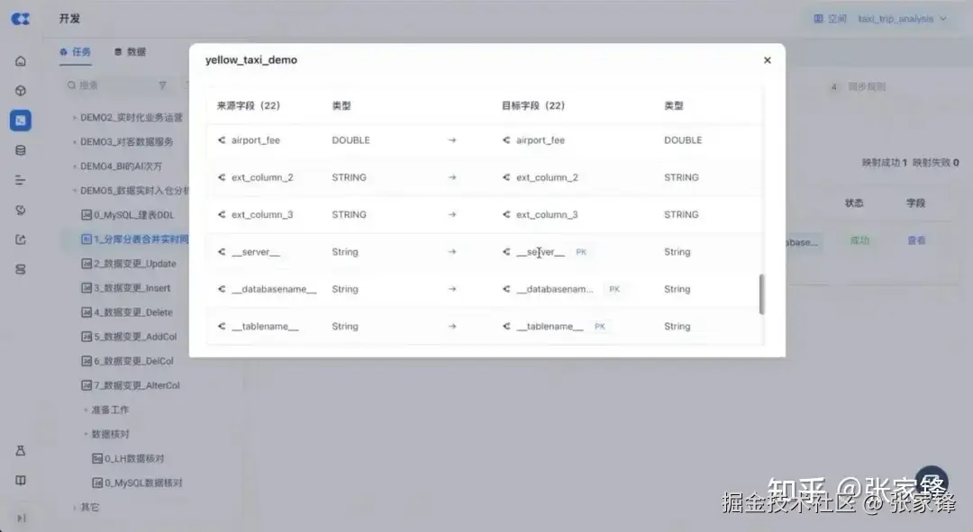 接下来可以在映射关系中预览同步的字段配置,可以看到扩展字段包含在内,新增组件/联合主键也在这里有所体现。