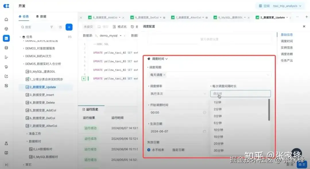 为此,云器Lakehouse可以灵活地配置调度周期,比如可以从每周执行调整为每天执行,从每天执行一次改为执行多次,调度频次也支持灵活设定间隔,最小支持 1 分钟,这是传统批处理的方式。