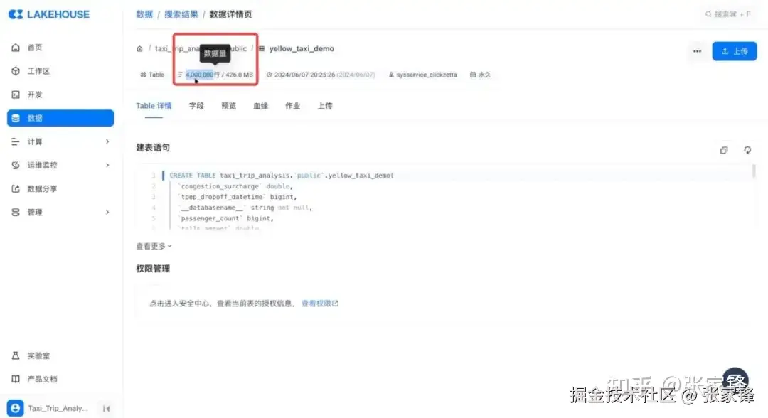 云器Lakehouse还提供数据资产管理的产品模块,可以实时检查目标表的数据量的情况,全量同步完成后,可以看到目标端的数据条数和源端完全一致,为400万行。