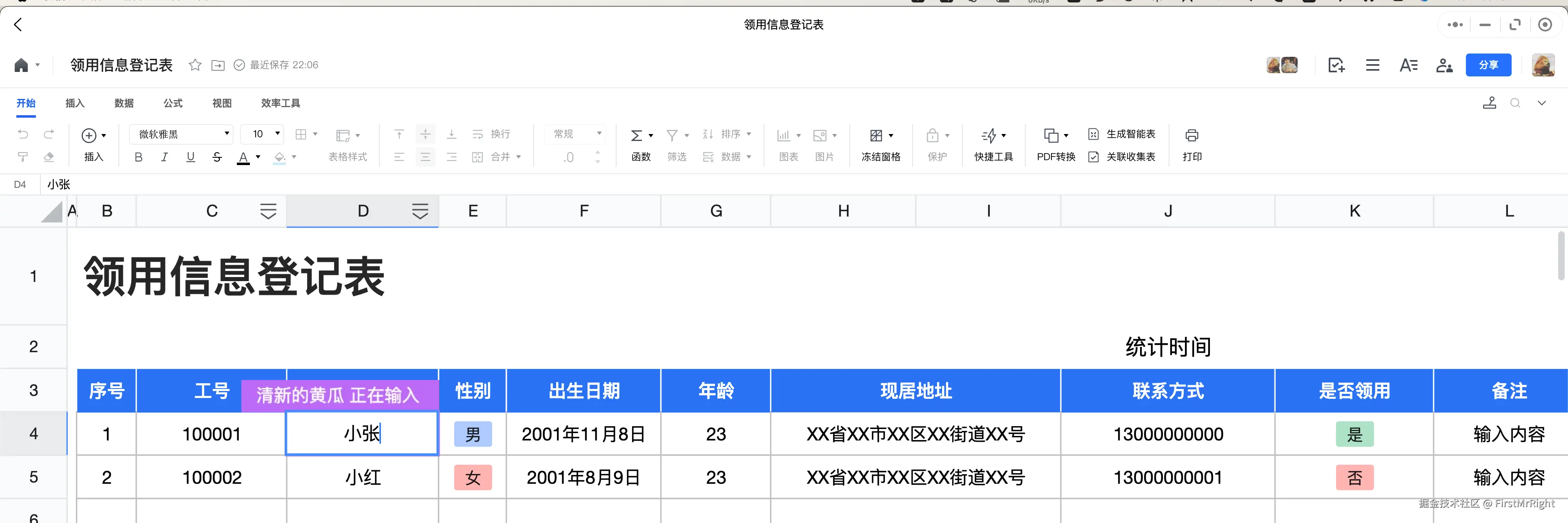 在介绍行锁概念前,请想象一张用于统计年终礼品领取情况的在线Excel,其中每一行代表一条用户的礼品领取信息。假设多个人要同时编辑这张表格,但为了防止不同的人同时修改同一行导致混乱,每当有人编辑某一行时,在线Excel文档就会给这行加一个“锁”,这个锁相当于一个“正在编辑中”的标识,其他人只能等待当前编辑的人完成(释放锁),才能修改这一行的数据。
