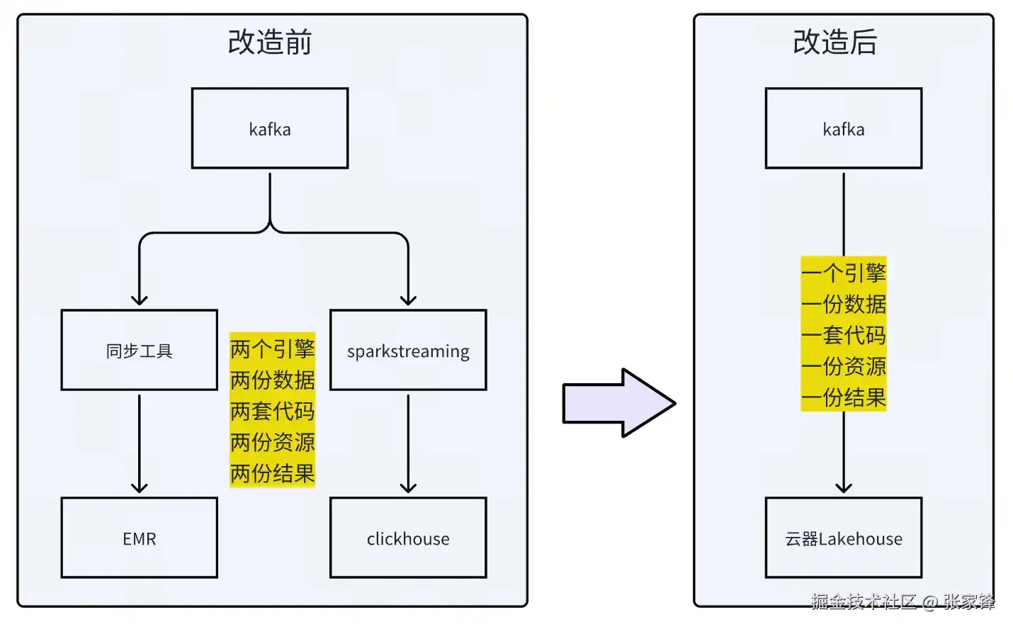 原有平台架构升级后,一个云器Lakehouse替代了原先5个组件,极大降低了平台复杂度。