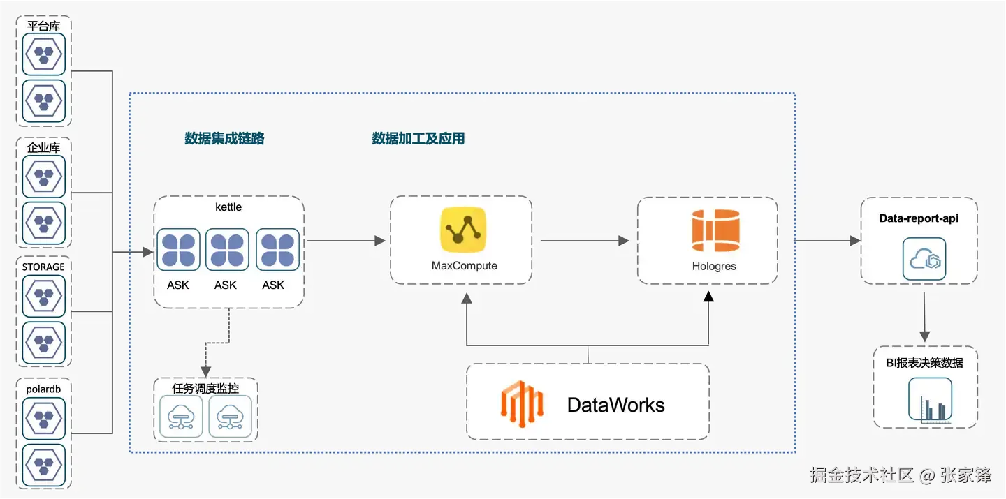 客户需要小时或分钟级数据。 原有架构使用的是Kettle加MaxCompute,是专为大规模离线任务设计的数据链路,链路的更新周期是“T+1”——即今天的业务报表呈现的是截止到昨天的数据。而客户需要更高新鲜度的数据。