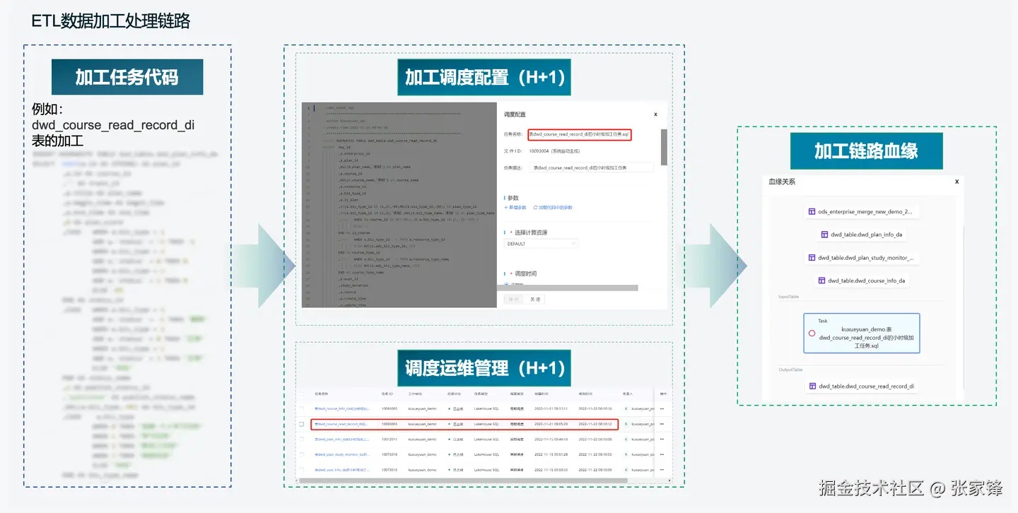 3、消除数据冗余,离线实时一体。 前面提到Lambda架构有数据冗余存储的问题,本次升级后,基于Single-Engine理念的一体化平台让数据从加工到调度、运维都简单很多。以下图为例,数据工程师只需一次对任务代码进行修改,数仓中贴源层数据与业务侧数据会始终一致,没有数据冗余和指标冗余的顾虑。此外,Single-Engine的离线和实时融合统一,只需调整调度就可切换,精益平衡数据新鲜度与成本。