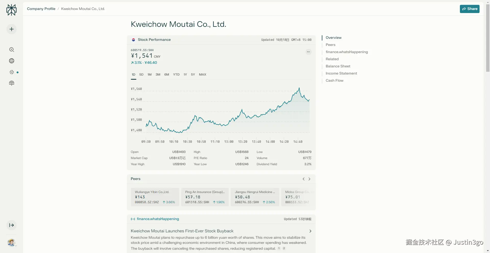 perplexity最近出的一个新功能,非常火,在识别到用户意图是分析股票后,会对结果页做出非常优秀的优化显示: