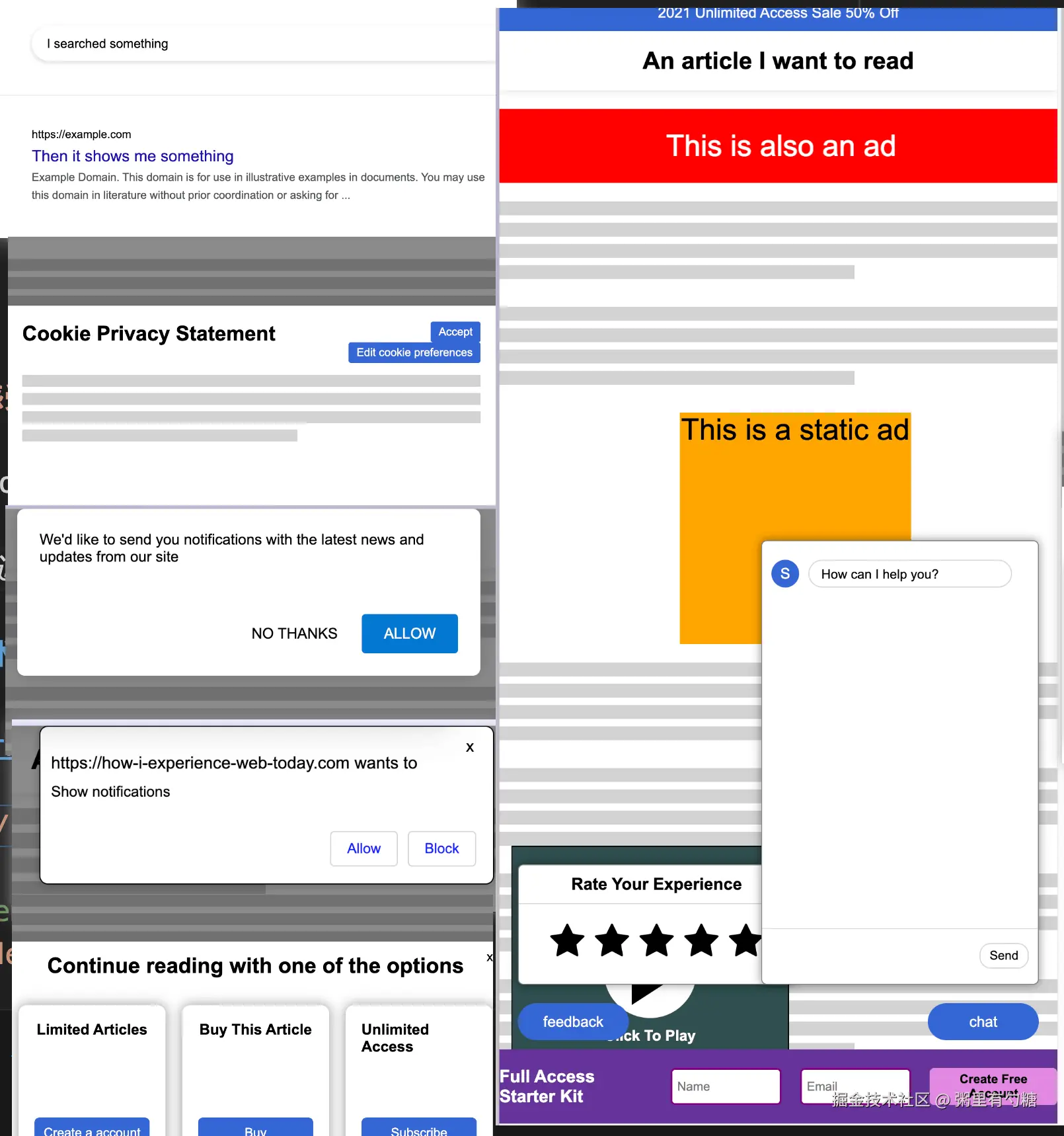 作者制作了一个demo,来模拟浏览一个网站时受到的打扰。