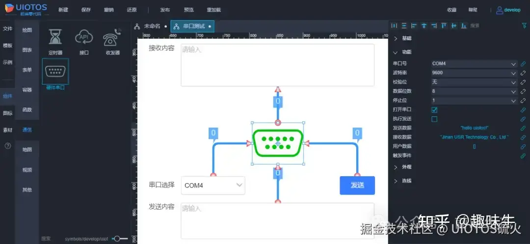 UIOTOS前端工具,无缝集成NodeRed后,提供了串口等组件,能访问本地硬件做上位机。
