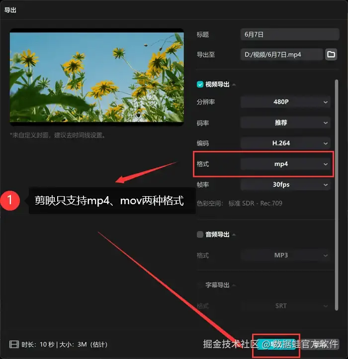 需要注意:虽然剪映可以播放和剪辑ts格式的视频,但剪映仅支持mp4和mov两种视频导出。