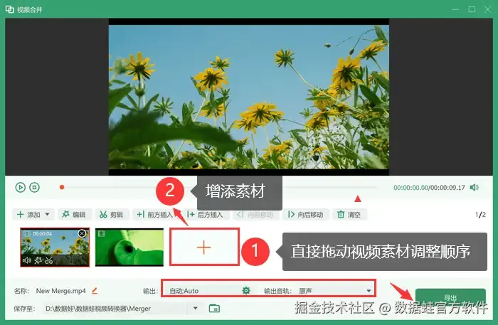 数据 蛙视频转换器是一款功能强大的多媒体处理工具,它不仅仅只像它的名字那样只能转换视频格式,还提供了视频合并功能。能够将多个ts视频合并成一个单一的视频文件。它作为一款ts视频合并工具操作简单,是一款众所周知的优秀音视频处理软件。