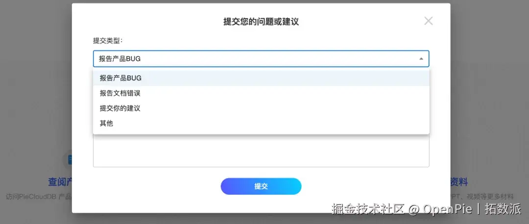 在体验产品的过程中,任何问题、反馈、或建议,均可在 PieStore 上通过表单提交。也欢迎加入技术讨论群,和群内小伙伴和技术专家们多多交流(微信搜索“pieclouddb”或扫描文章底部二维码)。