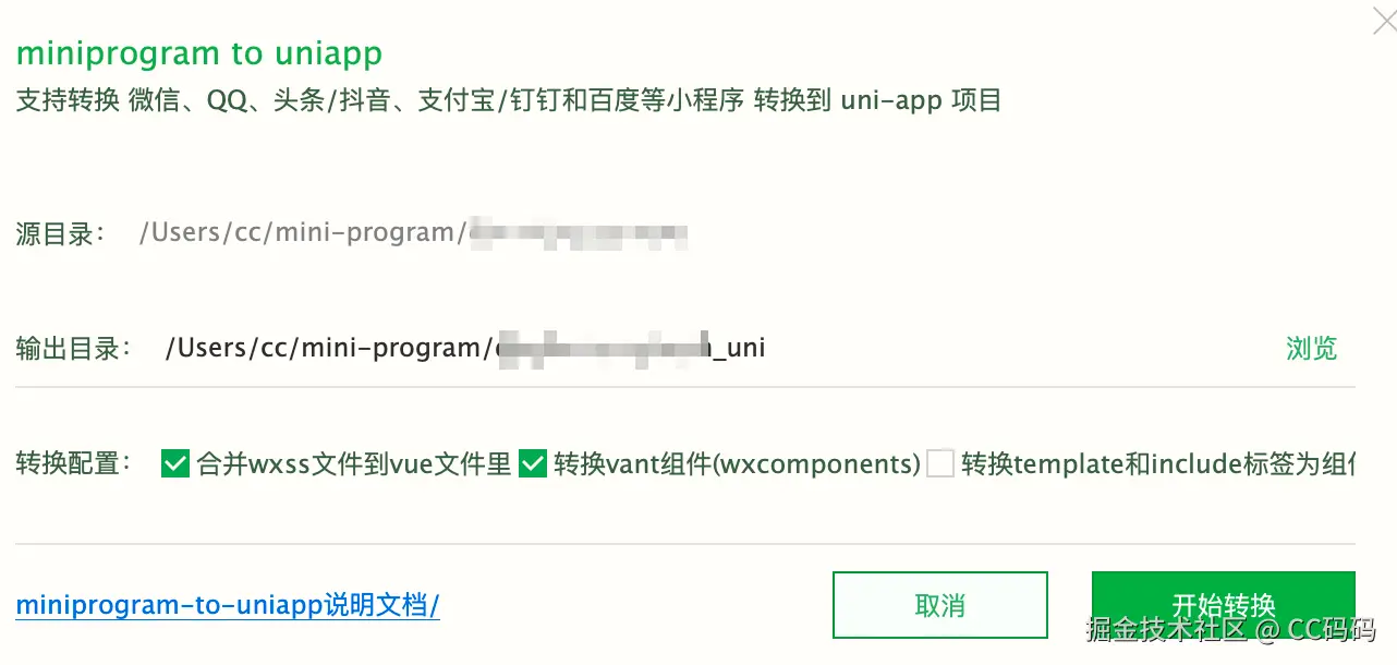 - 支持 vant 组件库的转换(使用 wxcomponents 方案)