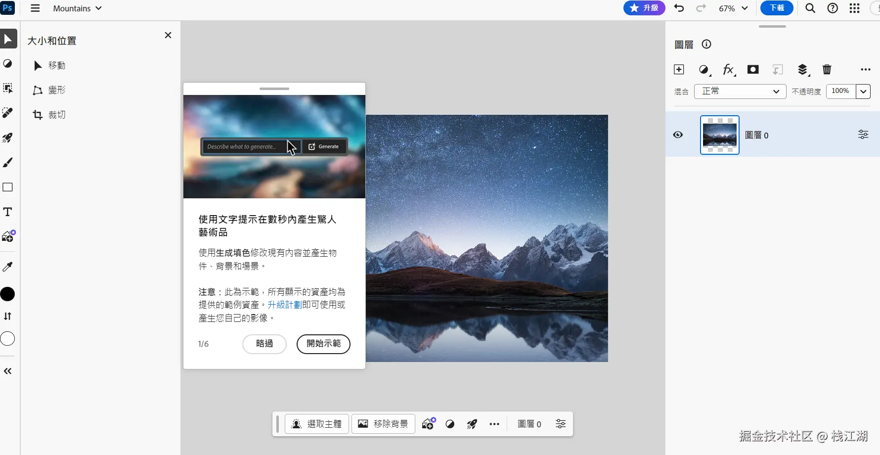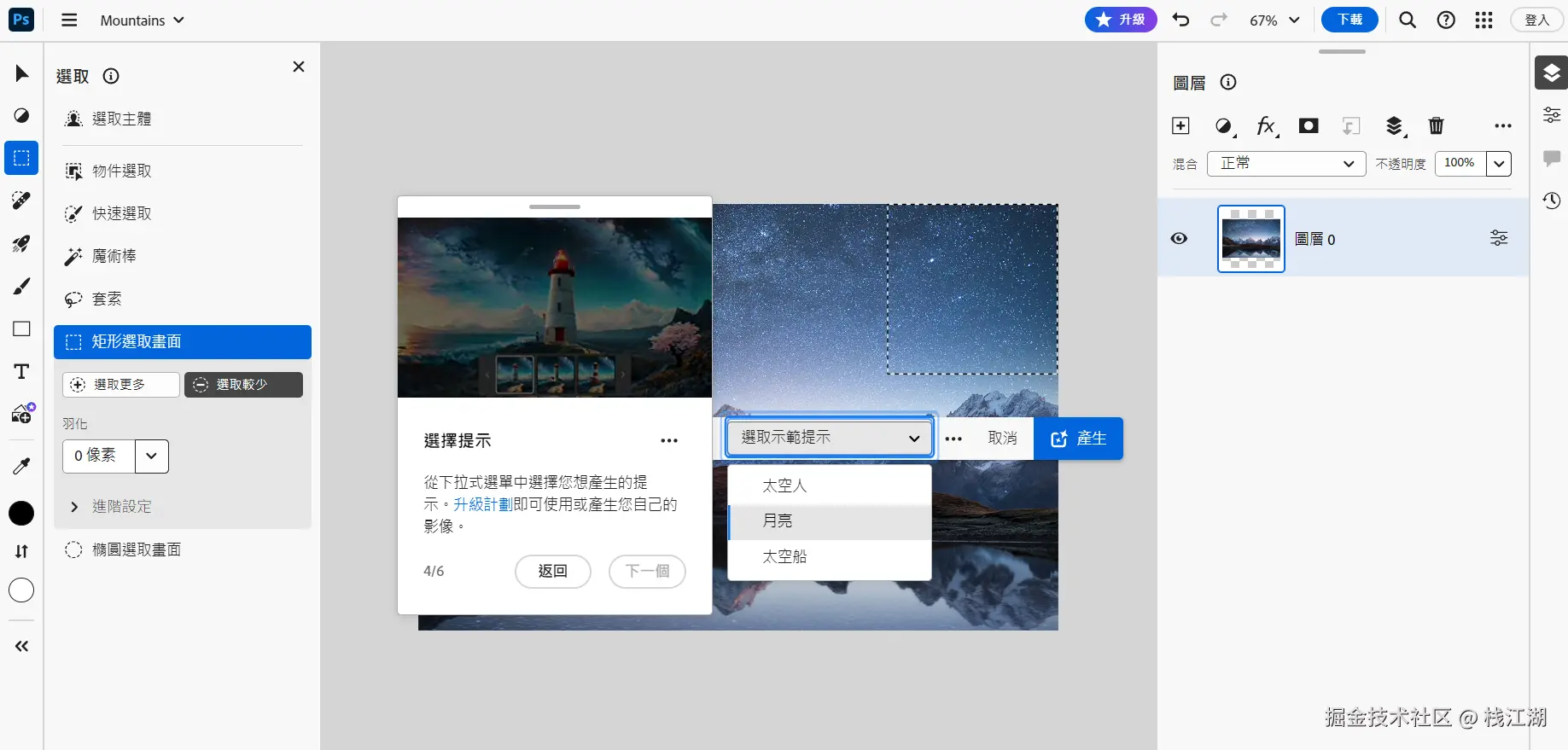 2023年5月Adobe Photoshop推出了AI能力版本,通过集成Adobe Firefly Image AI模型为用户提供全新的photoshop体验。用户可以非常方便的增加、扩展、删除图像内容,AI模型可以提供更自然、真实的图片效果。