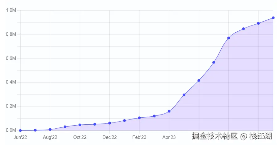从一些统计网站的数据可以发现如Midjourney他们官网的全球访问量还是逐步在上升的,以下是Midjourney官网全球访问量:
