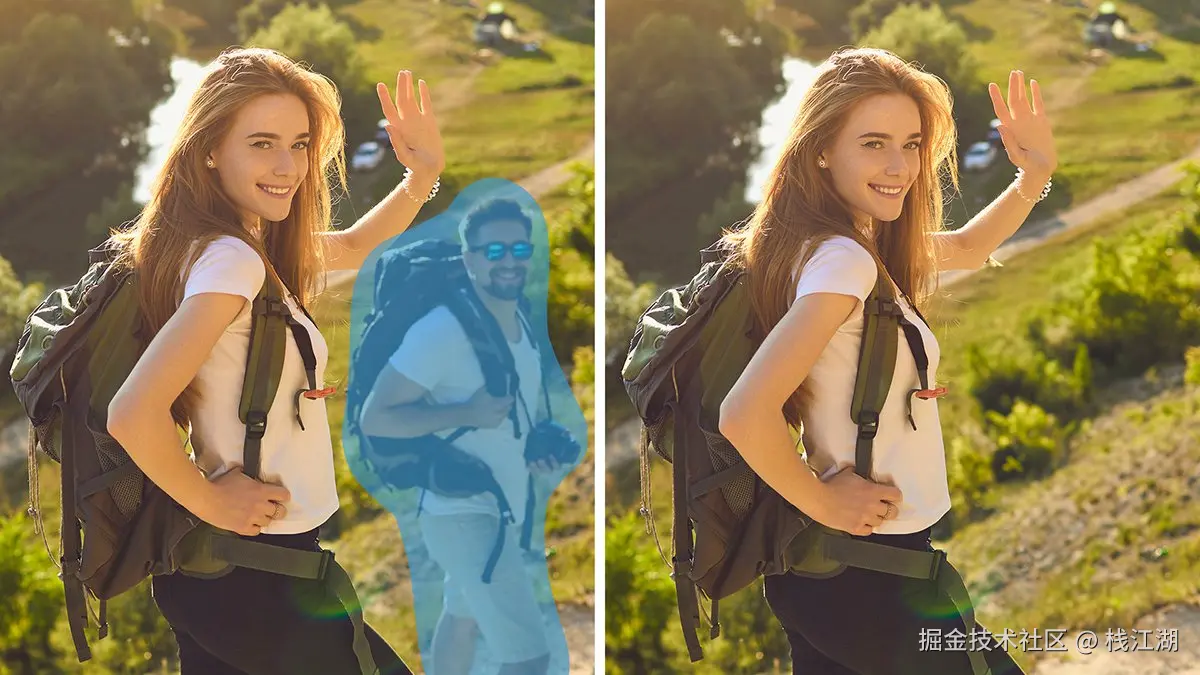 另一个技能就是,把照片中的路人甲去掉。只要选中就可以直接去掉,并且背景还会自动给填充好。相信很多小姐姐们都会非常喜欢这个功能
