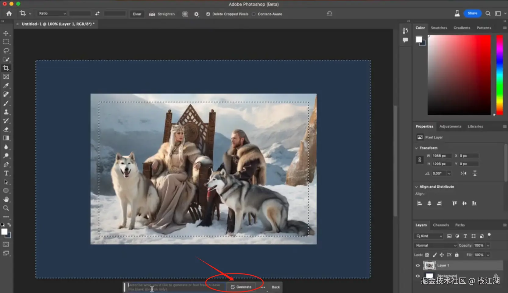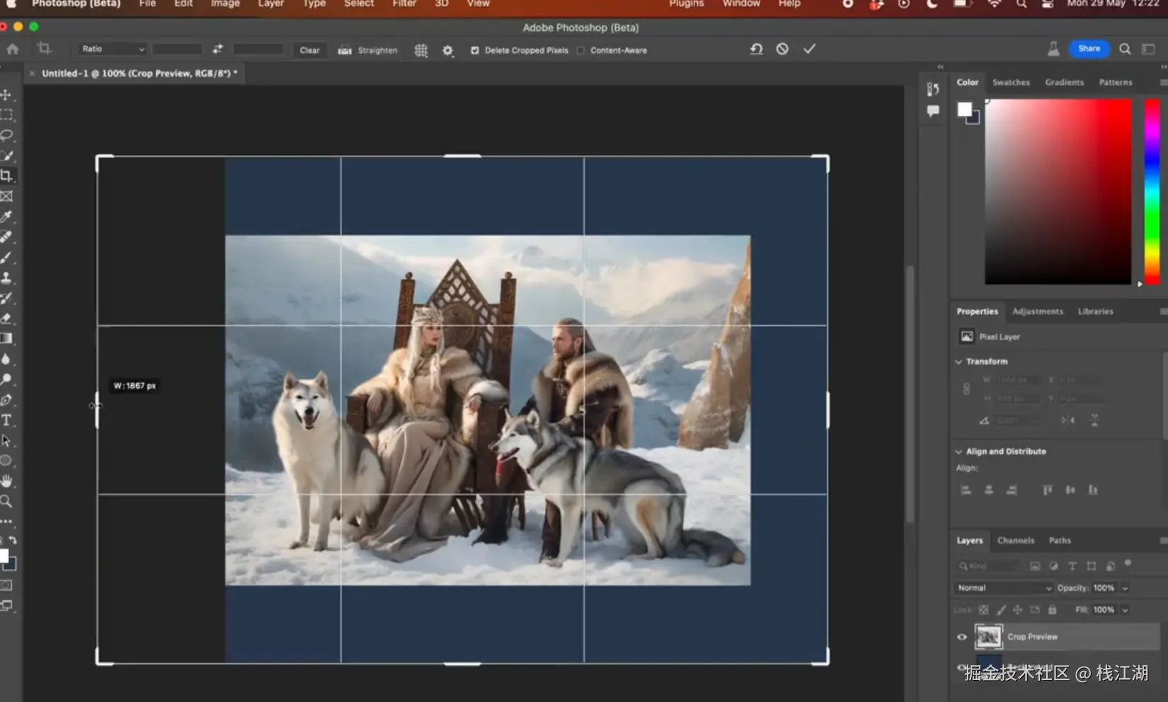 photoshop增加AI功能后,只要拖拽一下图片,拖出相应的尺寸