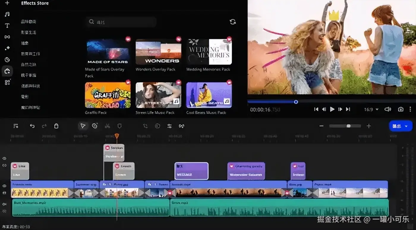 • 视频的部分素材和效果需要付费才可解锁使用。