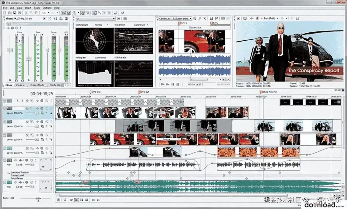 Sony Vegas Pro支持多轨道编辑,用户可以导入多个视频文件到视频编辑轨道中,用于视频的合并、移动、剪切等操作。下面分析该工具的优缺点。