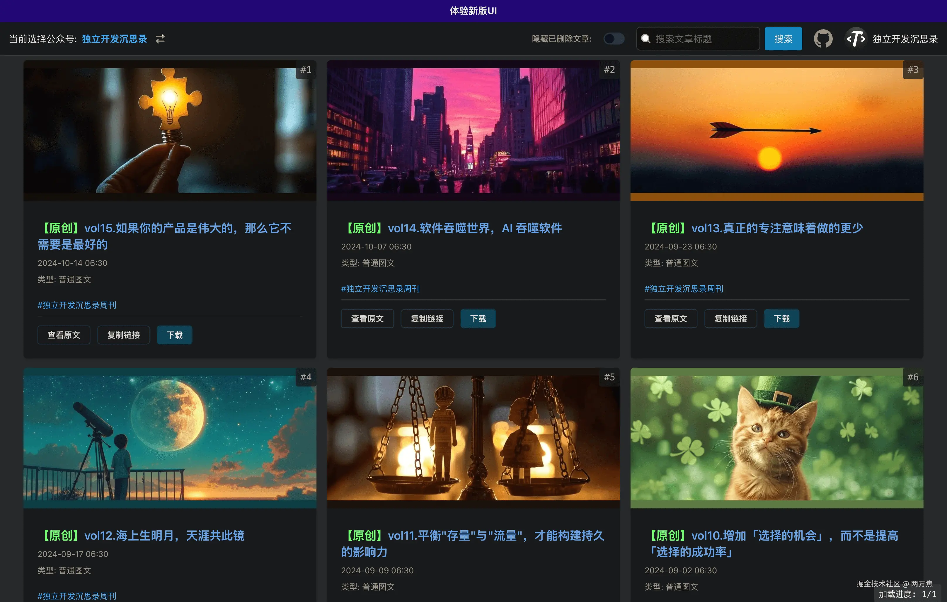 - wechat-article-exporter:在线批量导出微信公众号文章为本地 html 文件,可 100% 还原文章样式