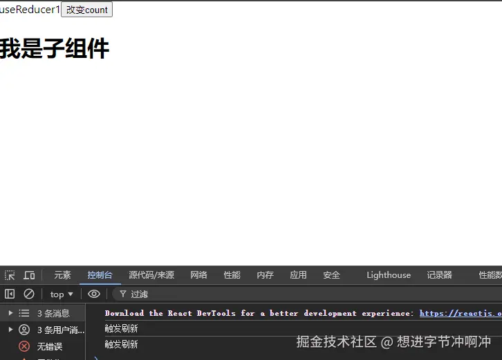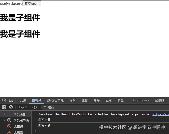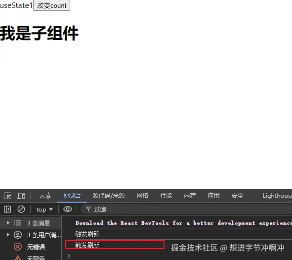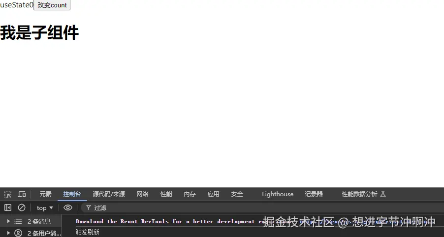 我们新增了一个子组件,同时有一个改变state的动作,看下结果如何。