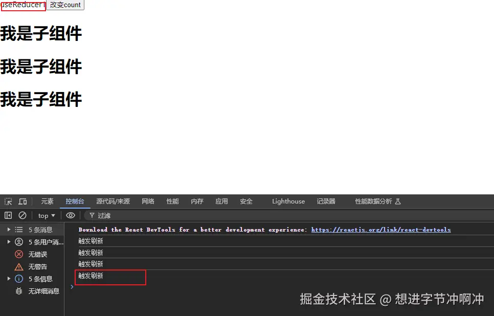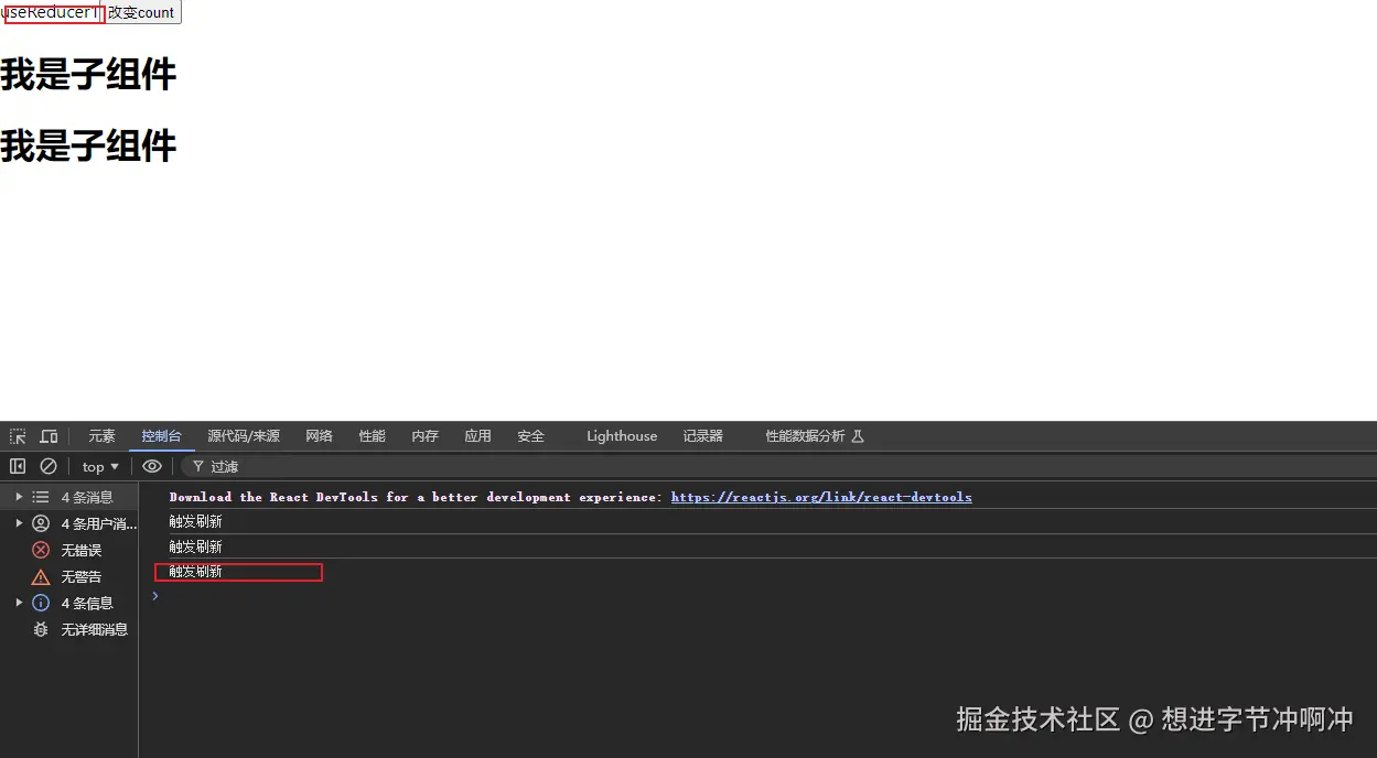 触发更新之后,看控制台只有一行打印,说明MemoSon没有重复渲染!