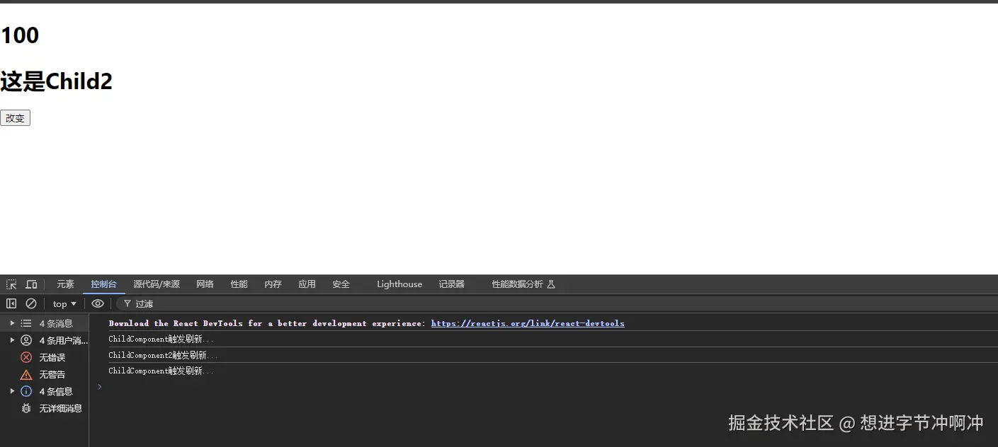 下面简单说下原理,后续会在源码层面进行分析他为什么会阻止重复渲染(点个关注,才能收到后续更新消息哦)