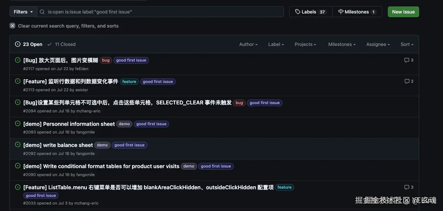 GitHub Issue: 当然你也可以在项目仓库的 Issues 页面中,找到各种各样的问题。作为一个新手可以优先考虑标有 "good first issue" 的问题,这些问题通常比较适合初学者。
