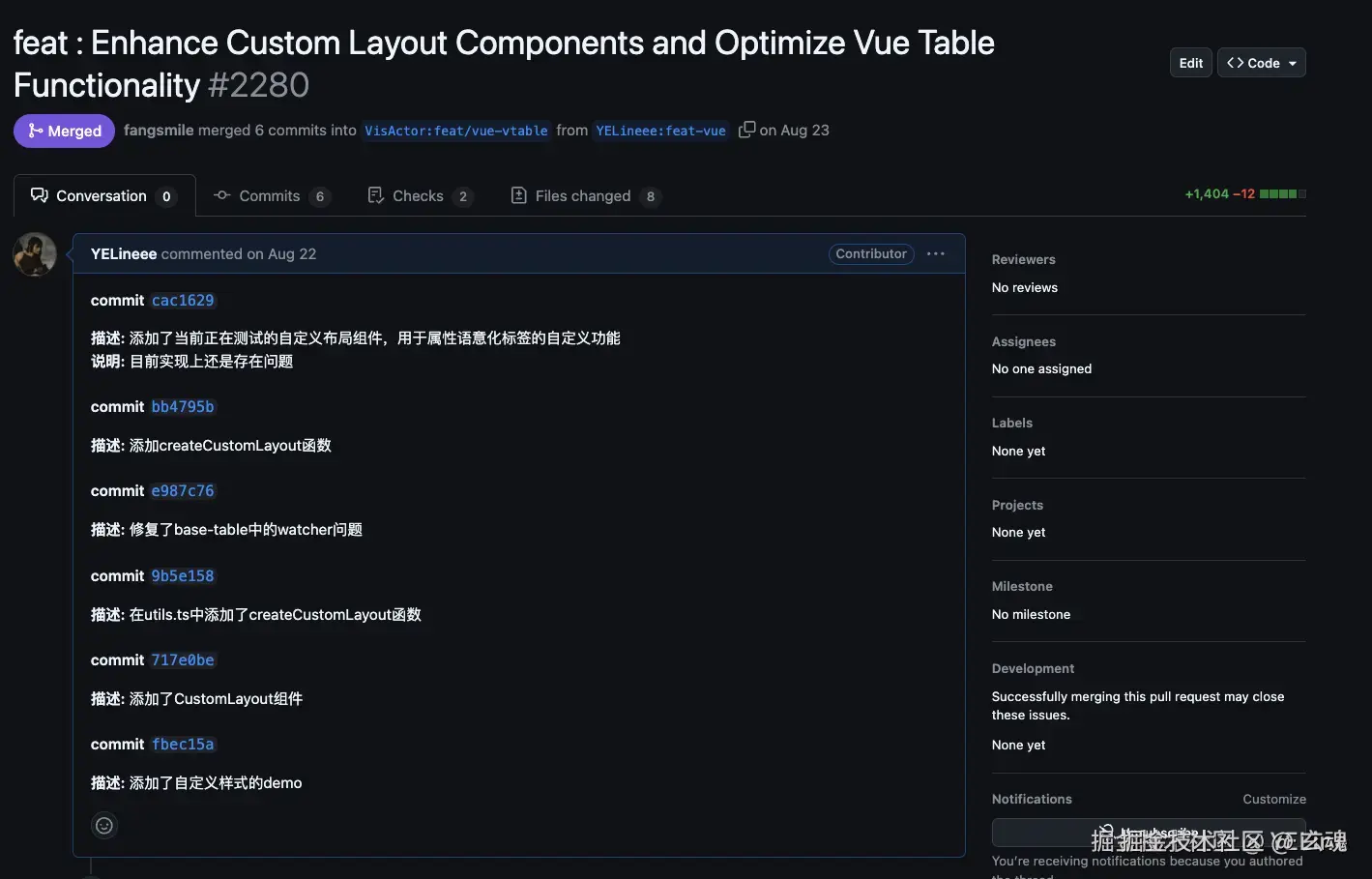 - 深入学习前端技术栈: 通过参与 VTable 项目,让我对 Vue.js、TypeScript 等前端技术有了更深入的理解,掌握了构建高性能、可维护的前端应用的技巧。