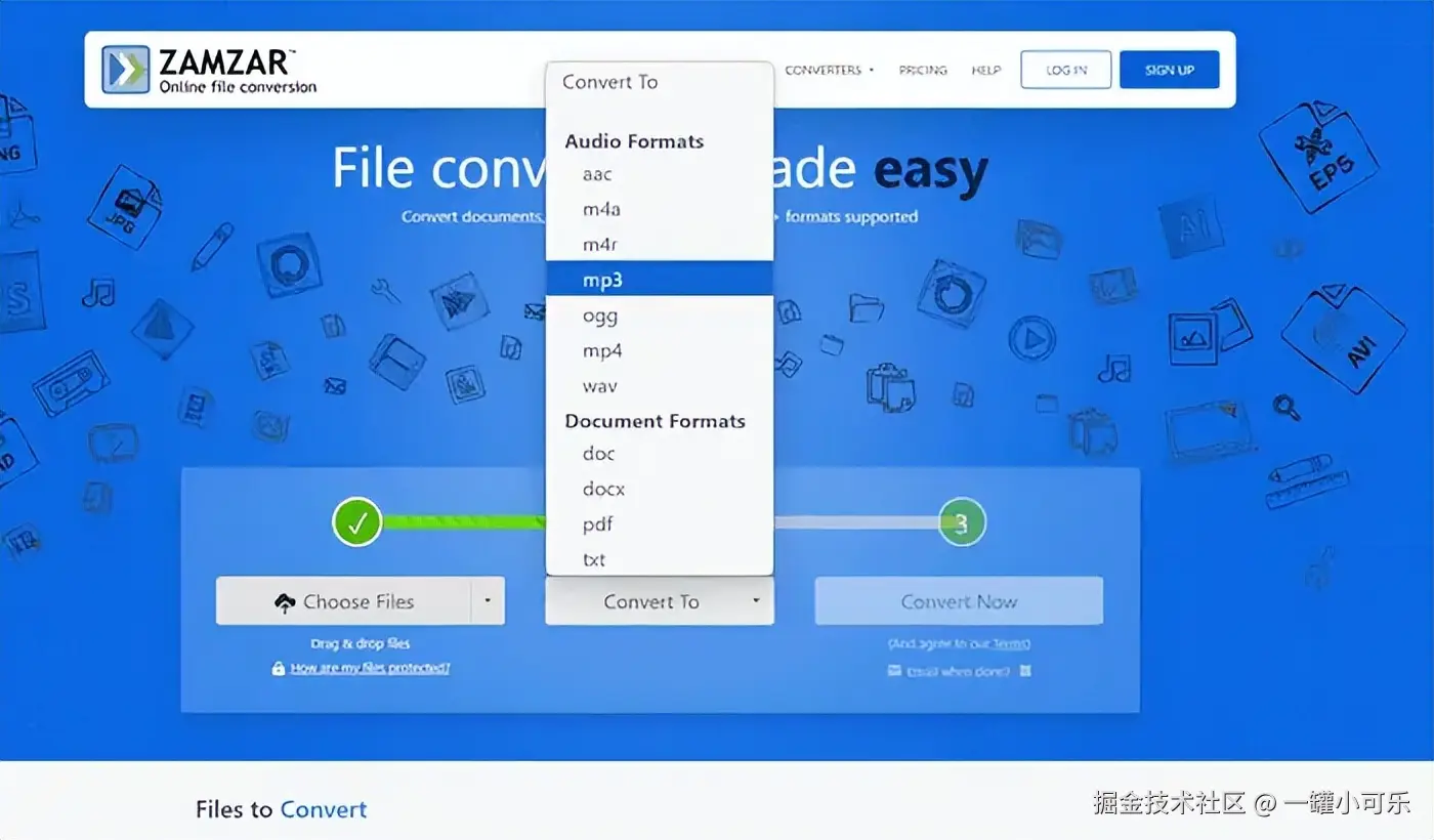 Zamzar也是在线音频格式转换工具,用户只需通过网页即可完成KWM转MP3格式。但是该网站不支持大型音频文件转换,且转换的音频音质较差。