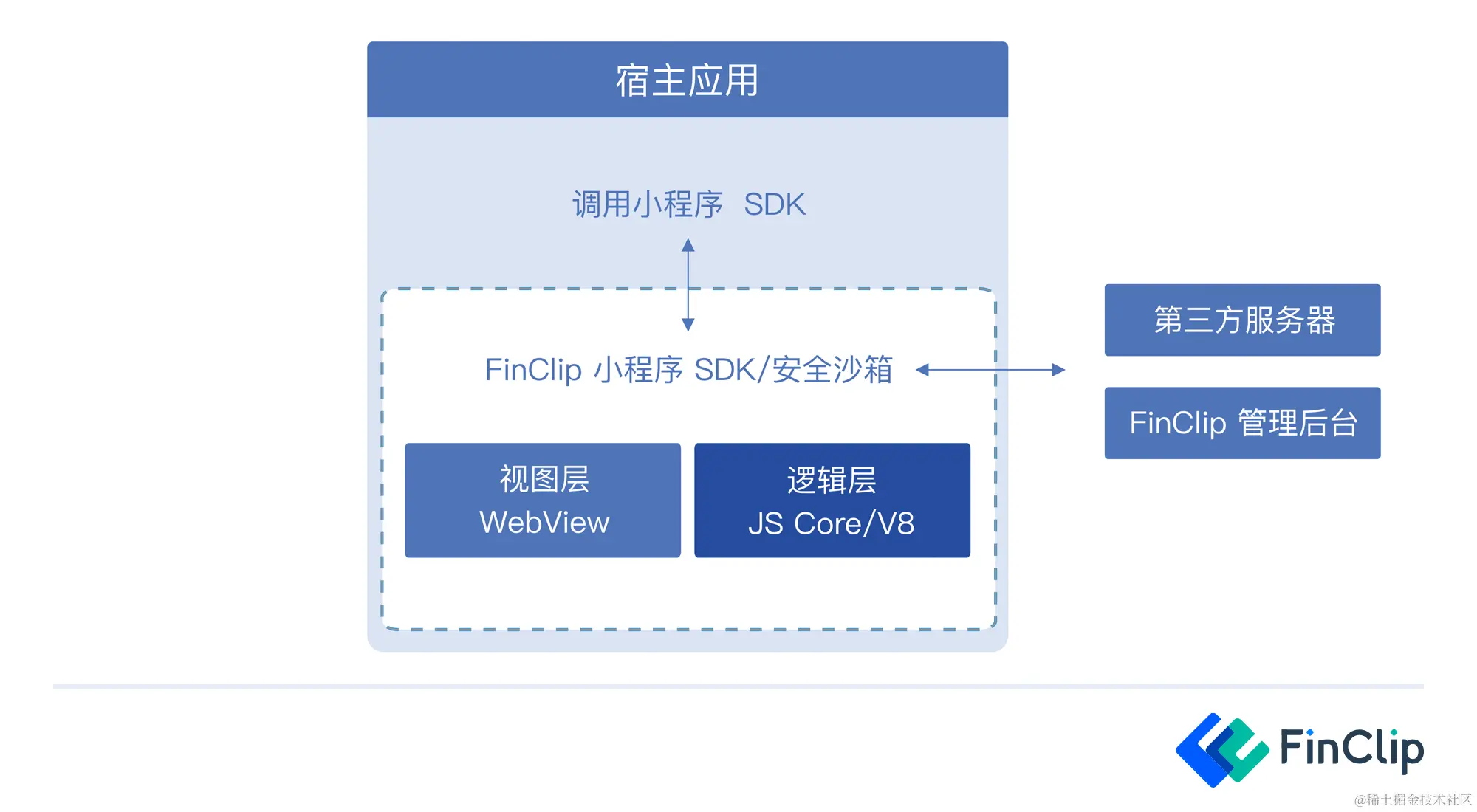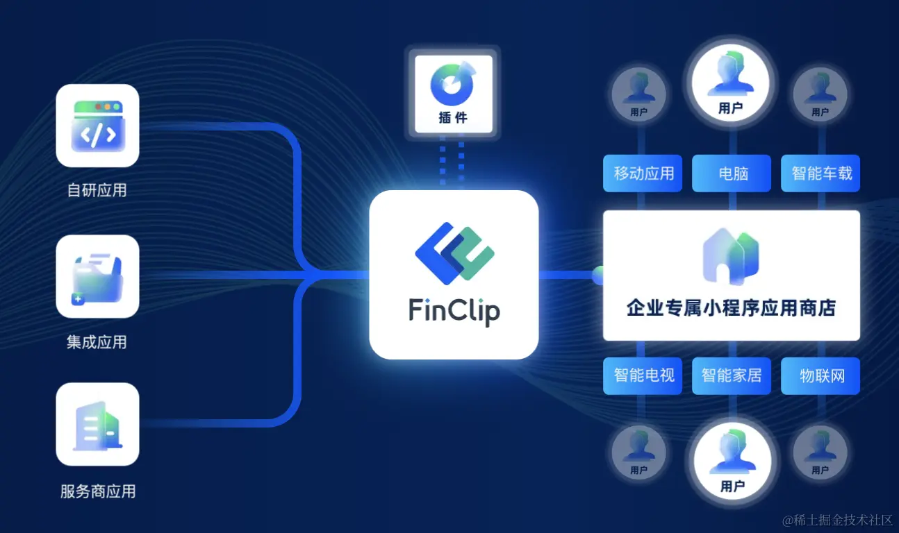 我们以FinClip为例,毕竟FinClip能够运行微信中的小程序,并且能够保证用户体验,客户量较大,国内较为领先的小程序容器化公司,我们熟悉的像建设银行app,工商银行app等都有它的身影,有整个一套完整的小程序管理平台,端侧小程序sdk,以及自身的开发者工具,方便运营开发以及数据分析